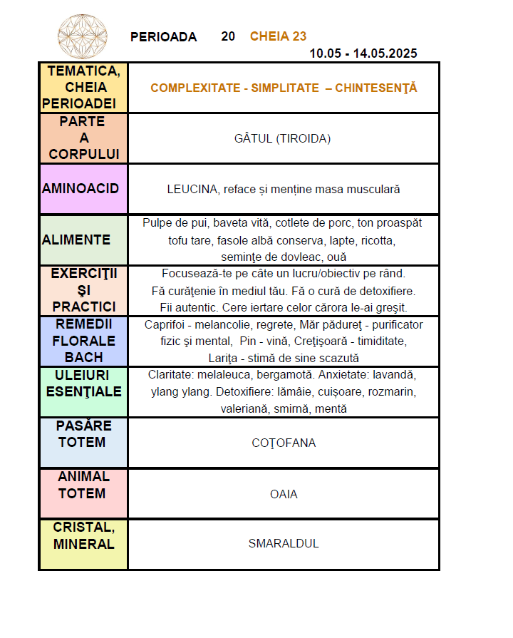 Reţete asumate pentru trup şi suflet: Calendar – Ghid recomandări terapeutice sincronizate cu Cheile Genelor (eBook disponibilla ileana@perfectlotus.ro)